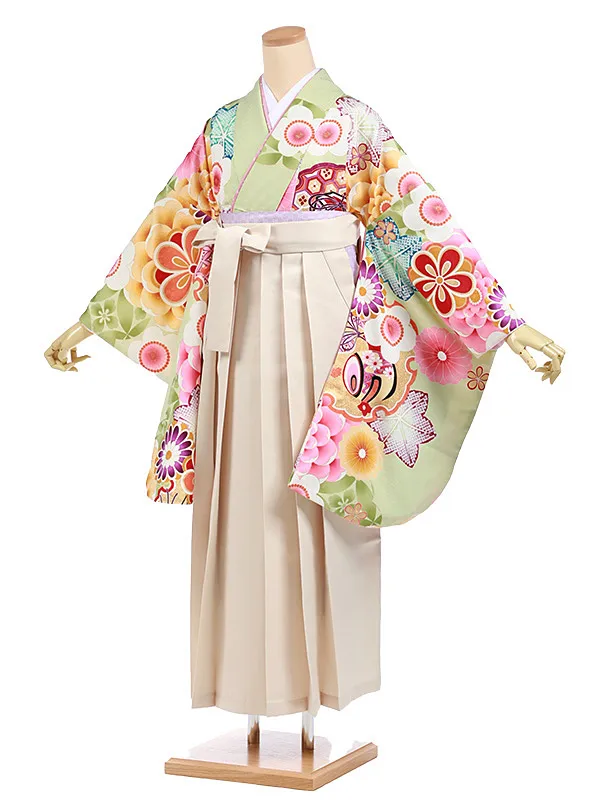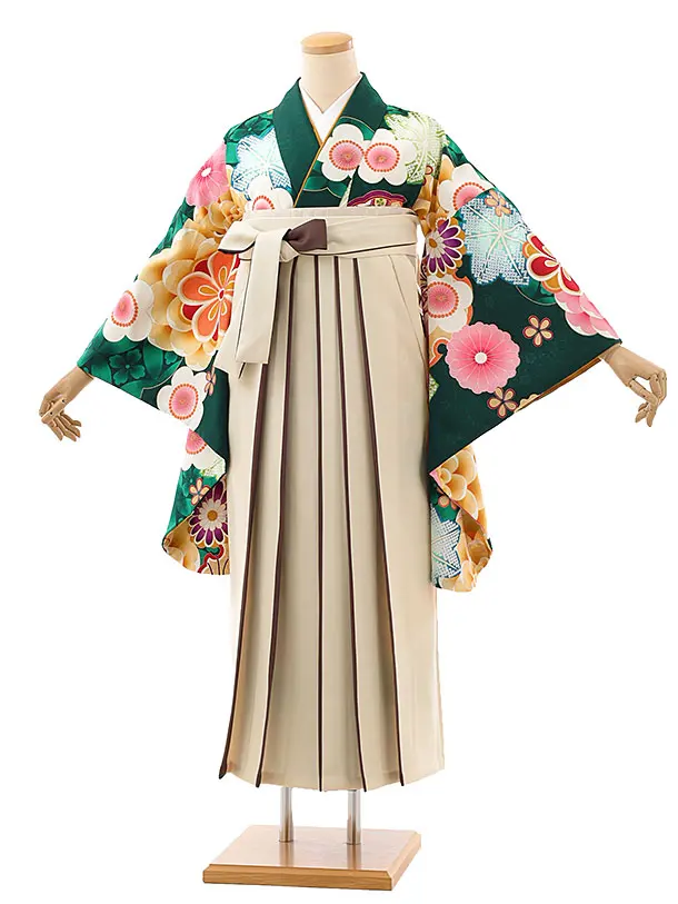 卒業袴レンタルh997 グリーン花×ベージュ袴
