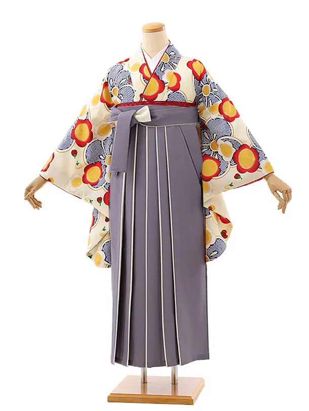 卒業袴レンタルh958 クリーム地 梅×ラベンダー袴
