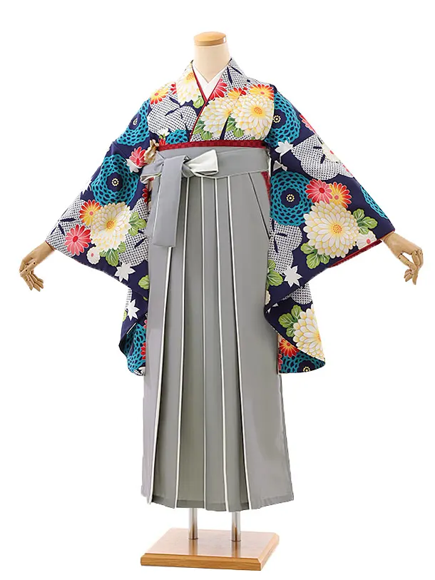 卒業袴レンタルh975 紺地花×グレー袴