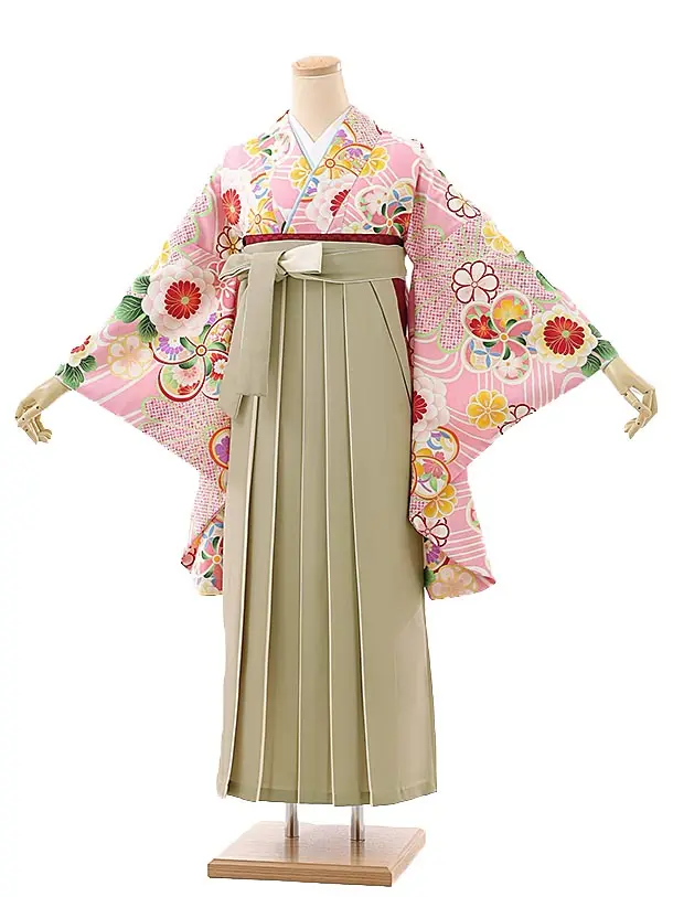 卒業袴レンタルh984 ピンク大花×グレー袴