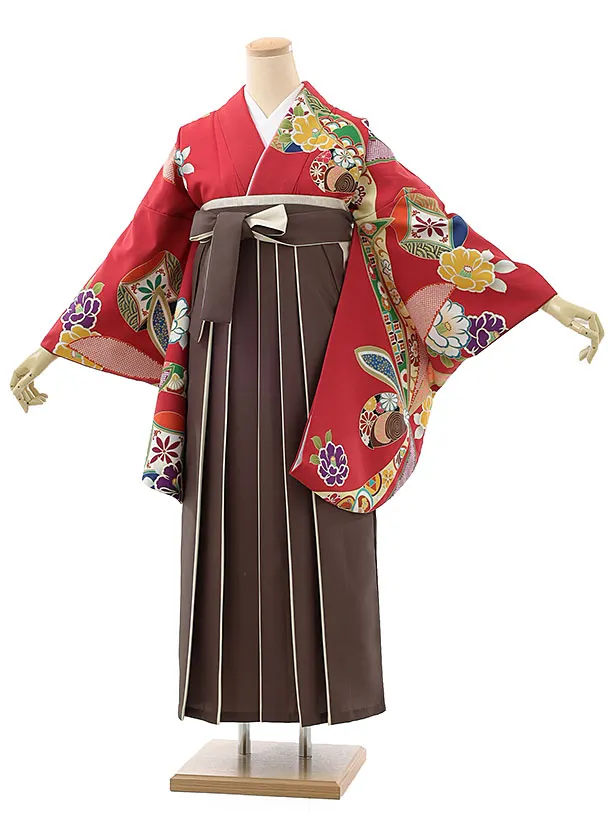 卒業袴レンタルh999 赤古典柄×茶色袴