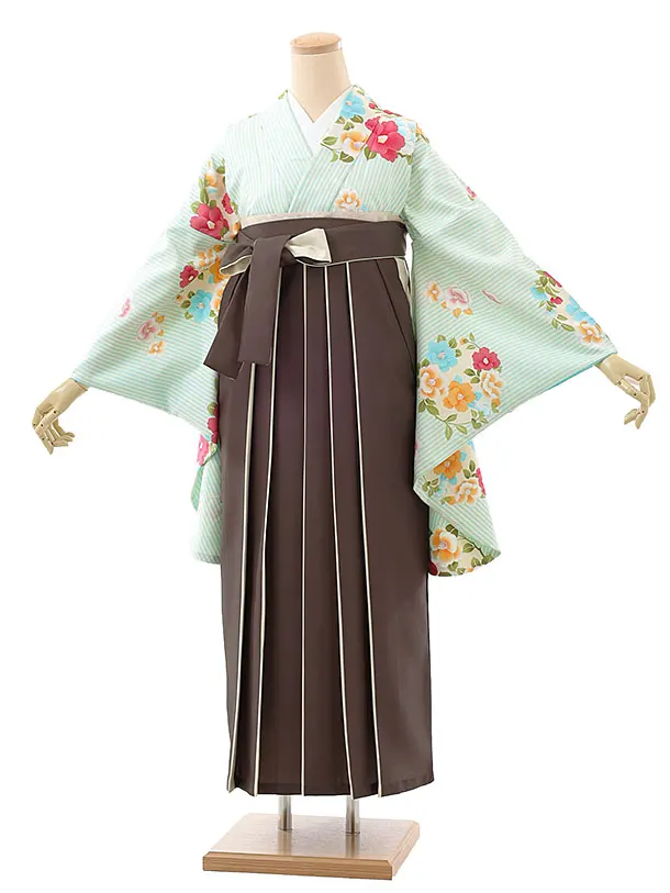 卒業袴レンタルh1000 パステルグリーン花×茶色袴