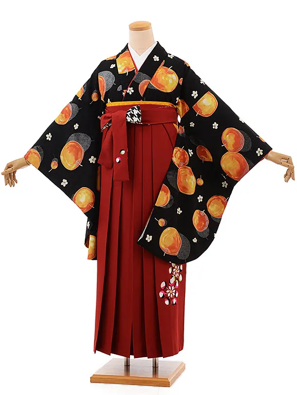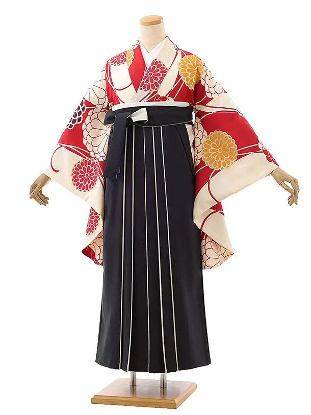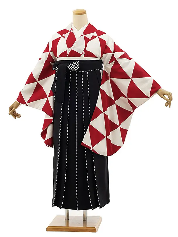 卒業袴レンタルh1017 赤白鱗柄×黒袴