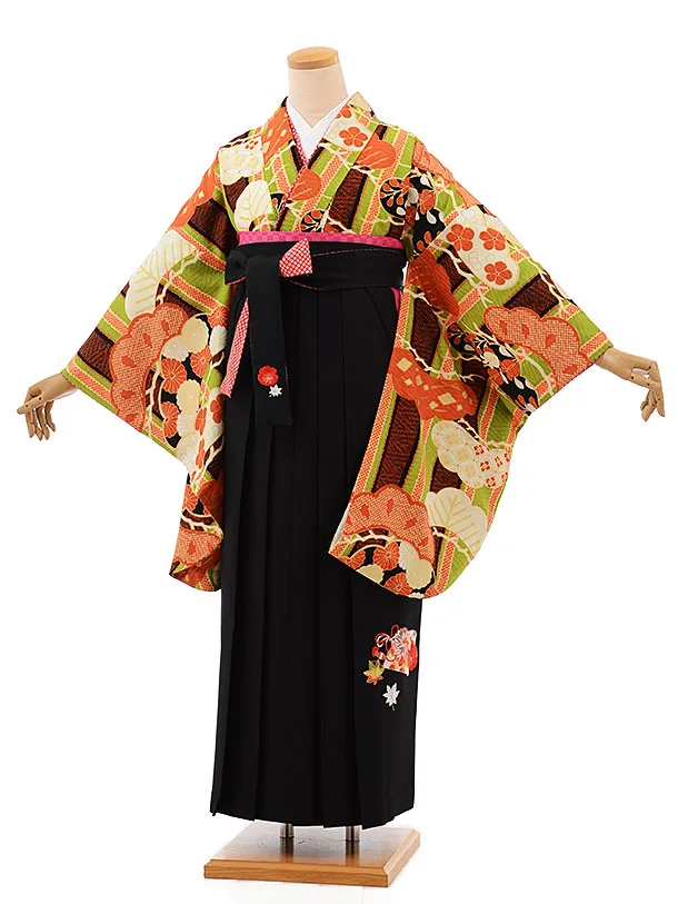 卒業袴レンタル h698 グリーン地古典×黒袴