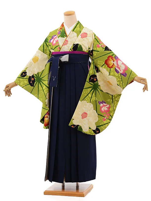 卒業袴レンタル h699 グリーン地椿×紺袴