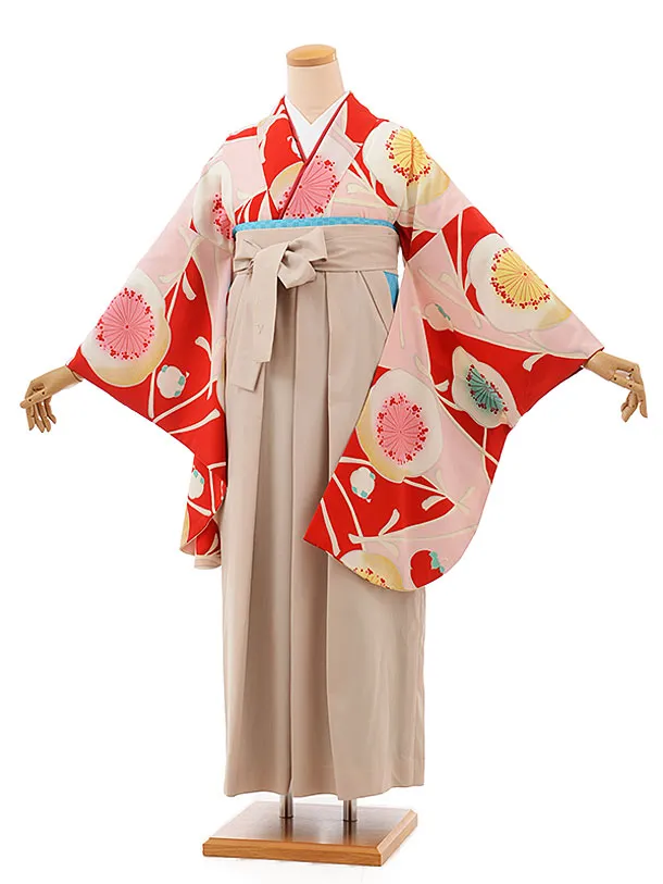 卒業袴レンタルh1009 朱赤古典花×ベージュ袴