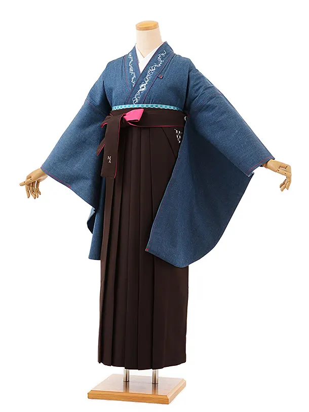 卒業袴レンタルh709 デニム赤ステッチx茶袴