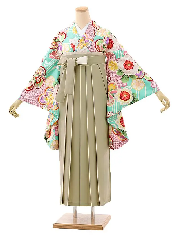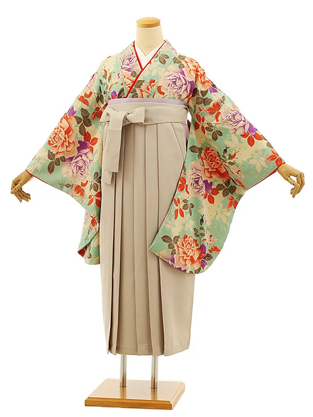 卒業袴レンタルh1010 パステルグリーン花×ベージュ袴