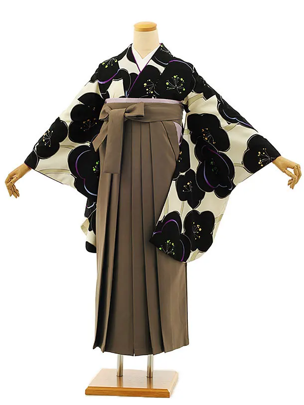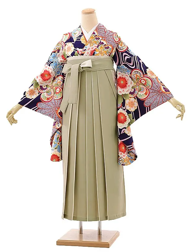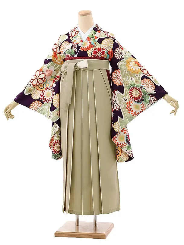 卒業袴レンタルh1011 濃紫花づくし×ベージュ袴