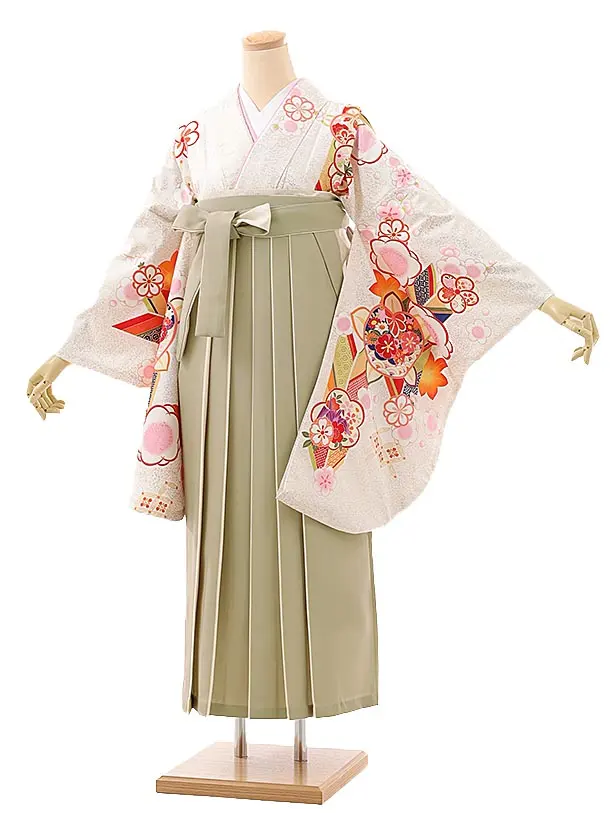 卒業袴レンタルh1013 白地古典×ベージュ袴