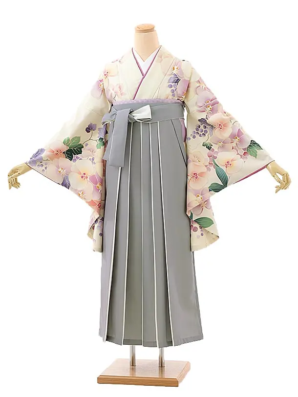 卒業袴レンタルh1014 ベージュ胡蝶蘭×グレー袴