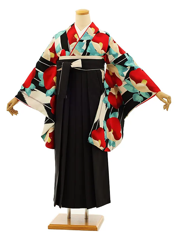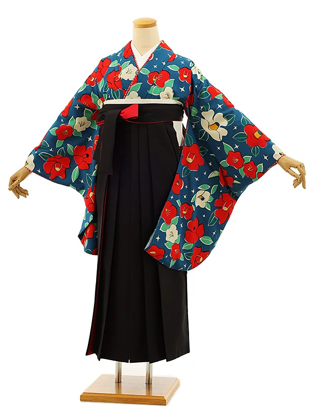 卒業袴レンタルh1020 九重ターコイズ椿×黒赤袴