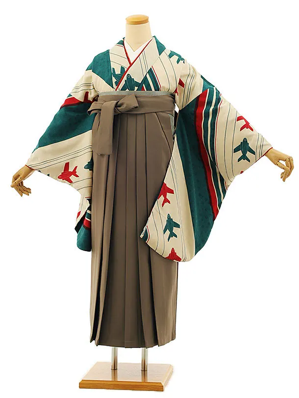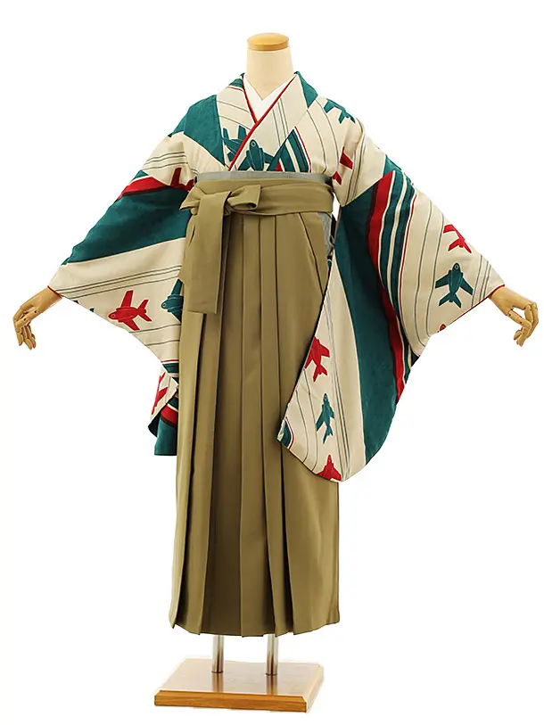 卒業袴レンタルh1032 モダンアンテナ飛行機×カーキ袴