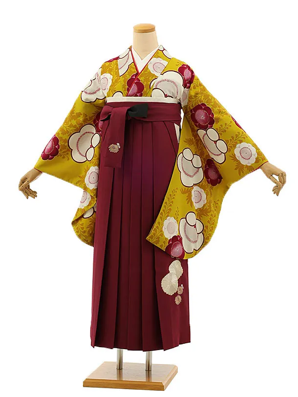 卒業袴レンタルh1092 Kansai からし色梅×エンジ袴