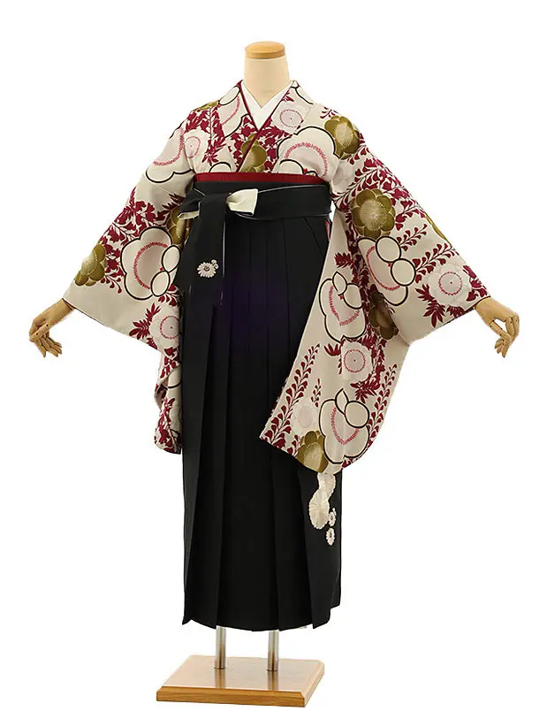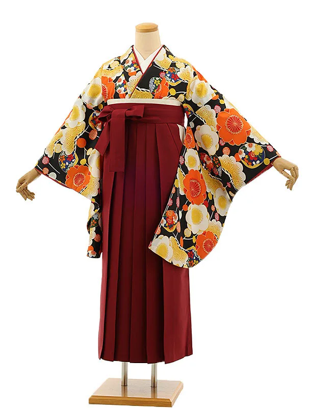 卒業袴レンタルh1111 黒地梅松×アイボリー袴