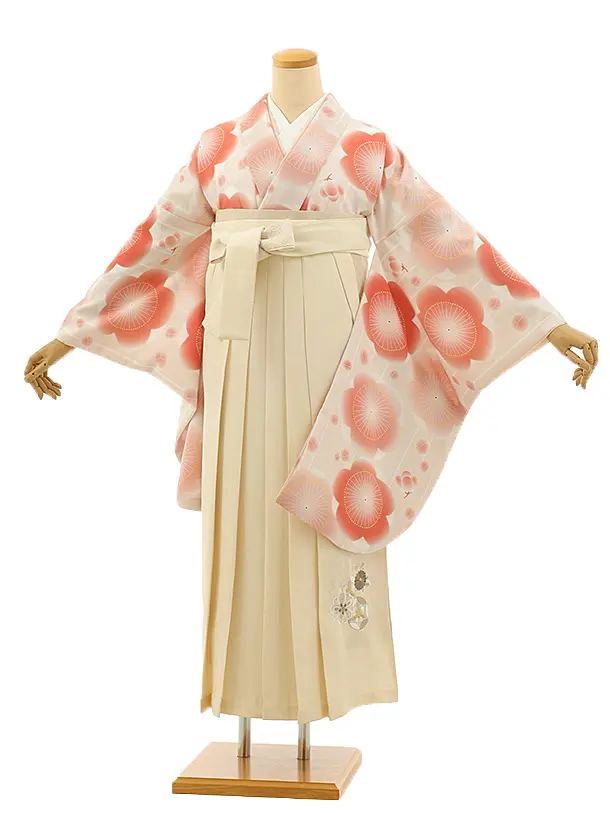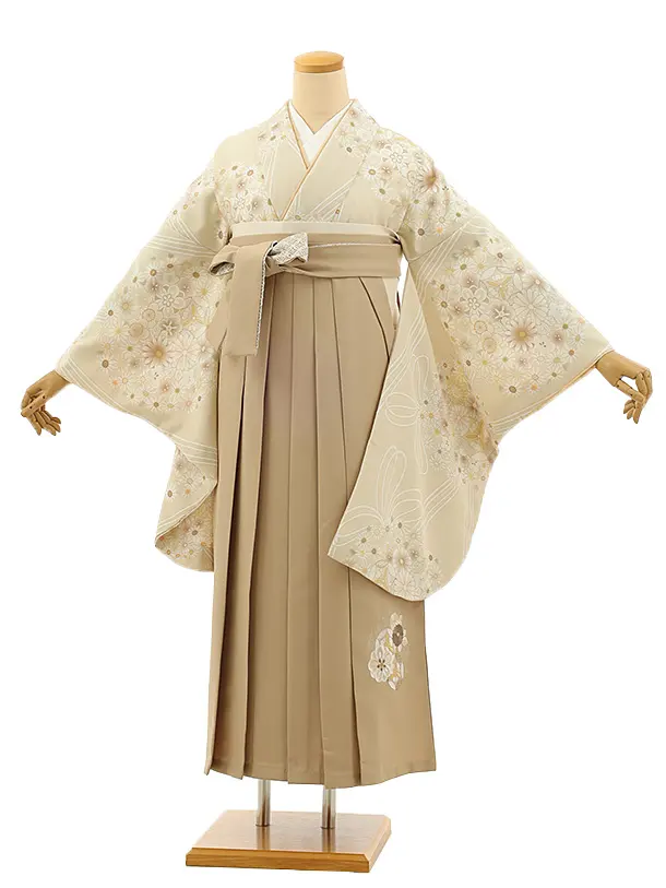卒業袴レンタルh1106 白地小花×ベージュ袴