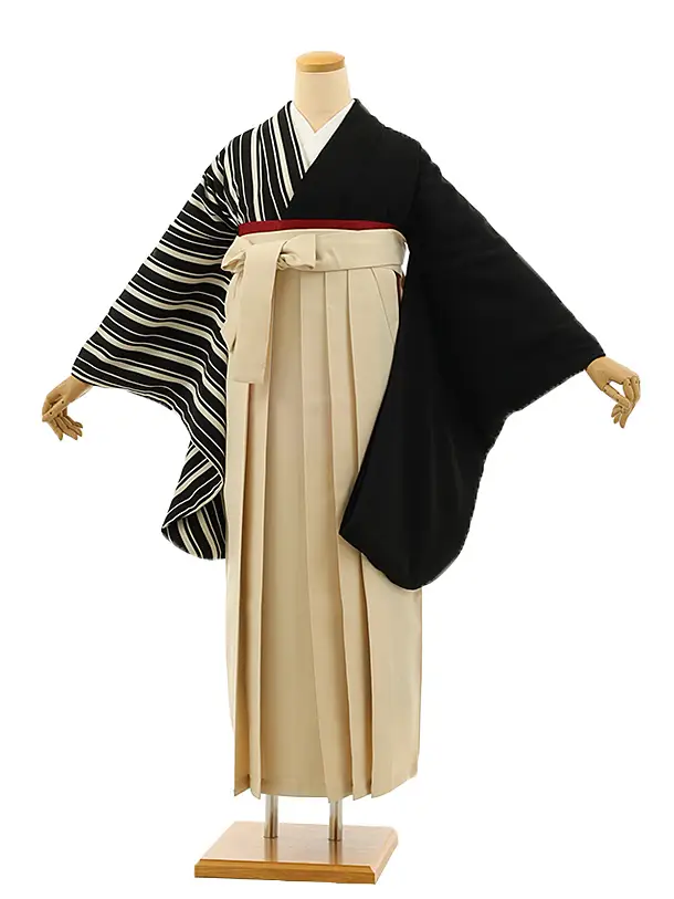 卒業袴レンタルh1101 黒白ストライプ×アイボリー袴