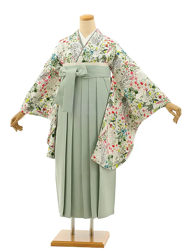 卒業袴レンタルh1105 白地小花×くすみグリーン袴