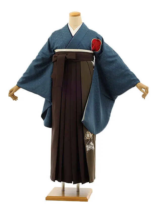 卒業袴レンタルh1118 ブルー 梅 刺繍×茶モスグリーン袴