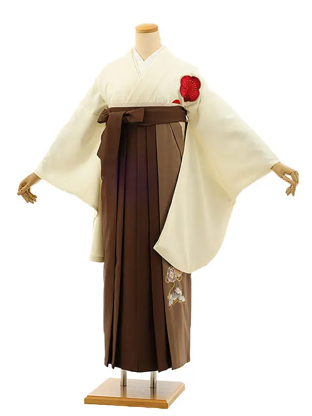 卒業袴レンタルh1120 クリーム色梅刺繍×モカ茶袴