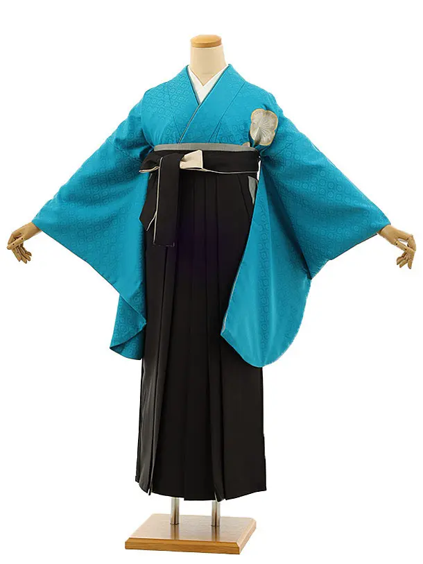 卒業袴レンタルh1163 黒地七宝地模様×黒赤袴