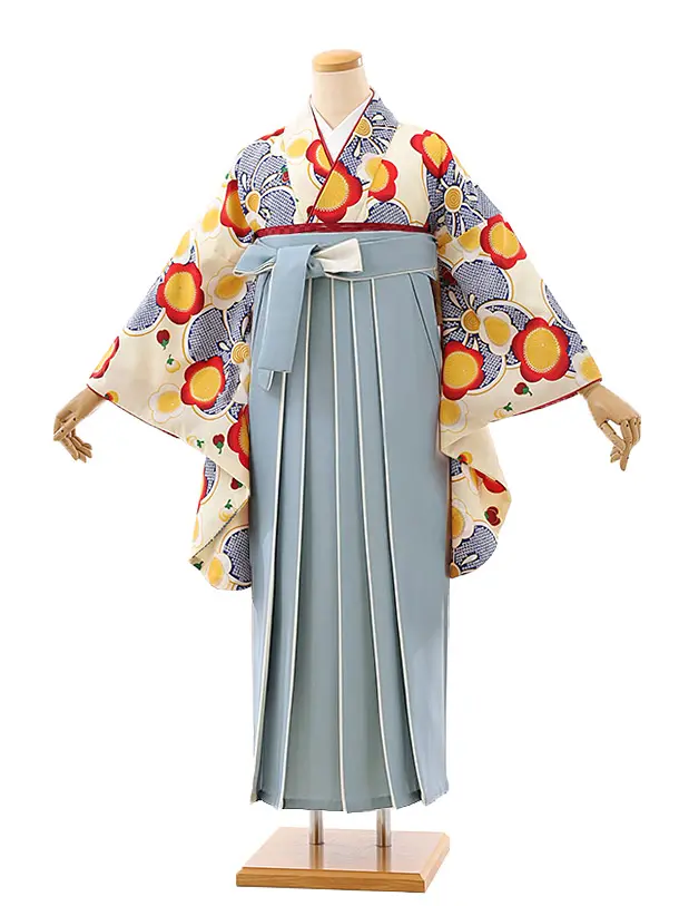 卒業袴レンタルh1124 クリーム色梅×ペールブルー袴