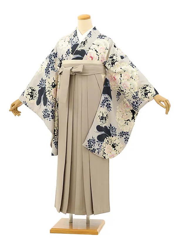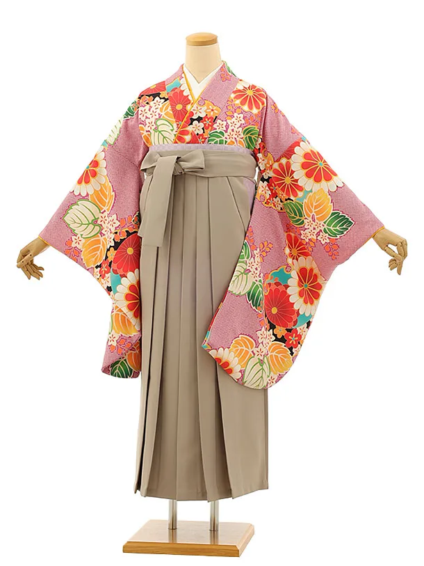 卒業袴レンタルh1164 パープルグレー花丸紋×ベージュ袴