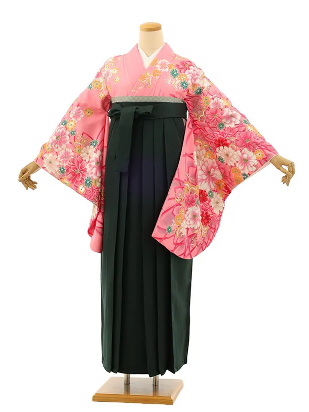 卒業袴レンタルh1158 ピンク花×グリーン袴