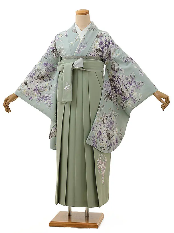 卒業式袴レンタル1246 SUGARKEI スミレに藤ペールグリーンxグリーン