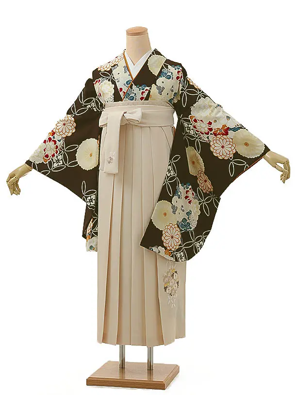 卒業式袴レンタル1311 九重 ブラウン牡丹菊xアイボリー