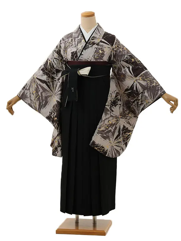 卒業式袴レンタル1315 九重 クリーム梅牡丹x黒