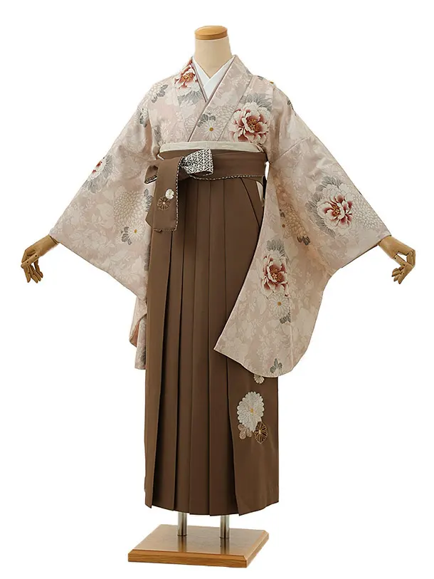 卒業式袴レンタル1313 九重 ピンクベージュ牡丹菊xモカブラウン