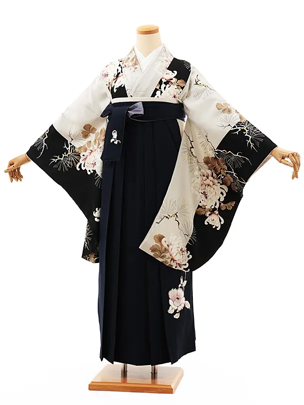 卒業式袴レンタルV696 そしてゆめ 昼夜菊松黒×紺