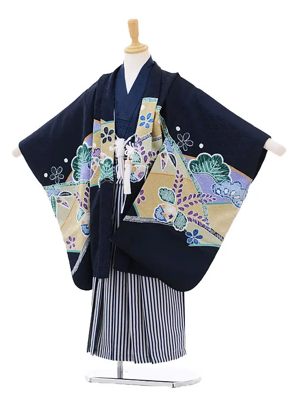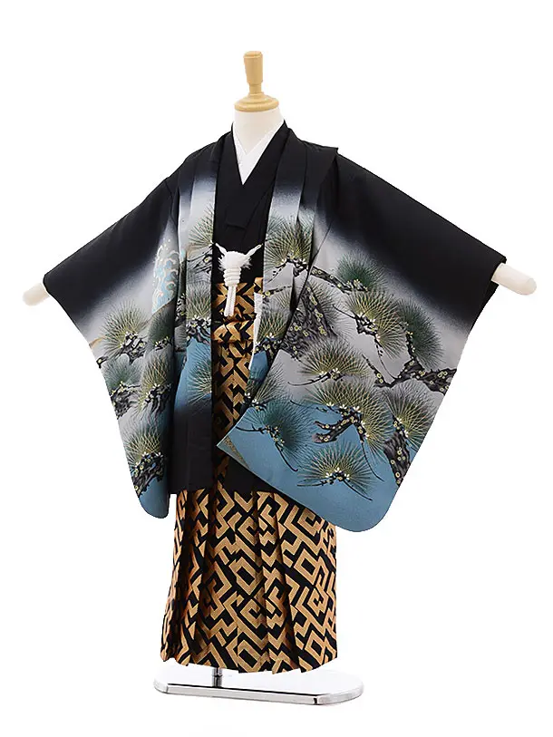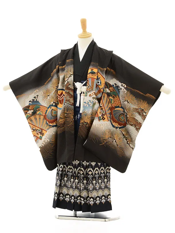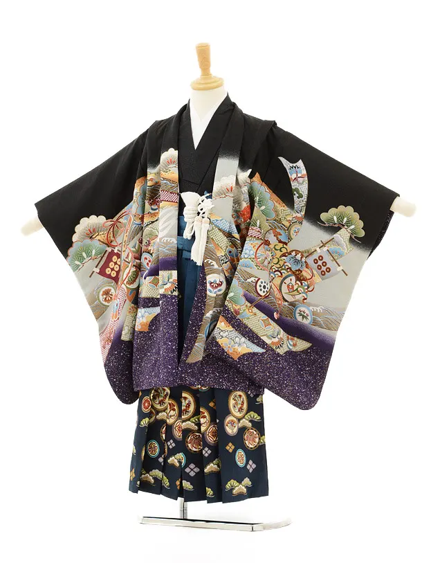 七五三レンタル(5男袴)5132黒かぶと松×紺地袴