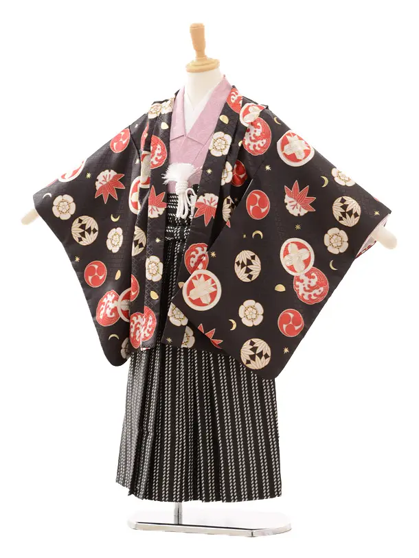 七五三レンタル(5歳男の子袴)5164黒地かぶとに丸紋×白黒袴