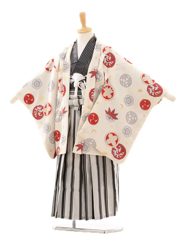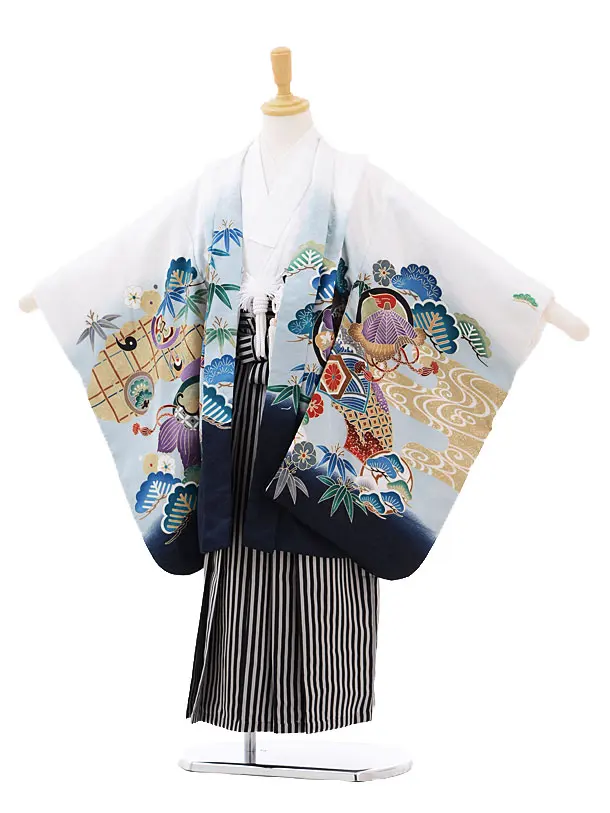 七五三レンタル(5歳男の子袴)5162白地鷹にのし×白黒縞袴