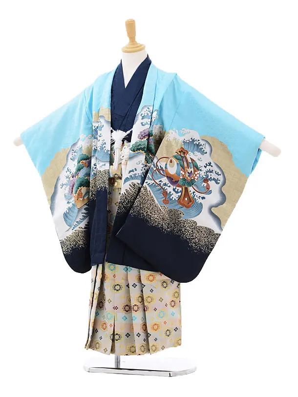 七五三レンタル(5歳男の子袴)5161水色鷹に宝舟×白糸袴