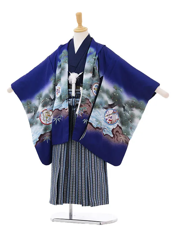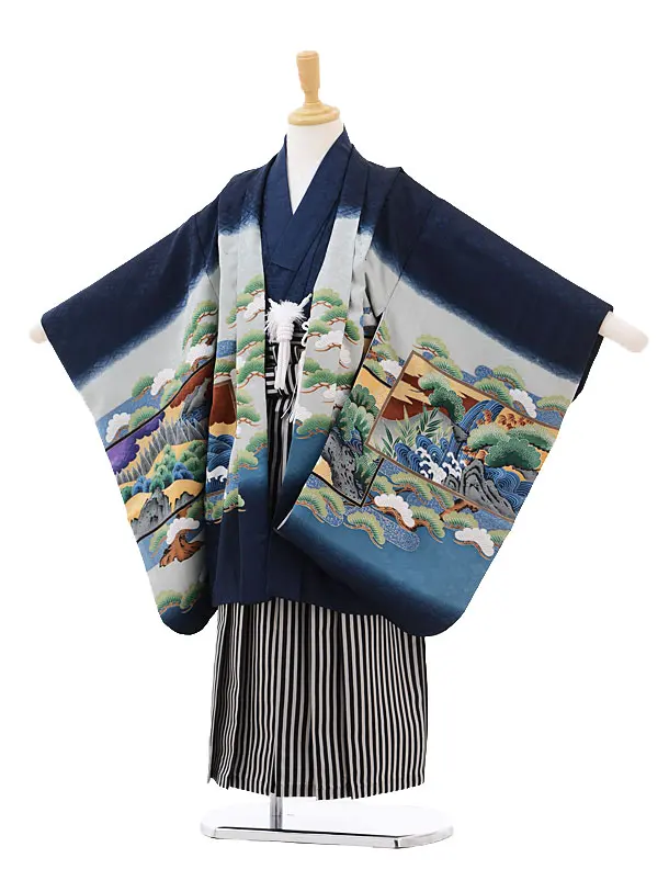 七五三レンタル(5歳男の子袴)5173紺地染分鷹×白紺縞袴