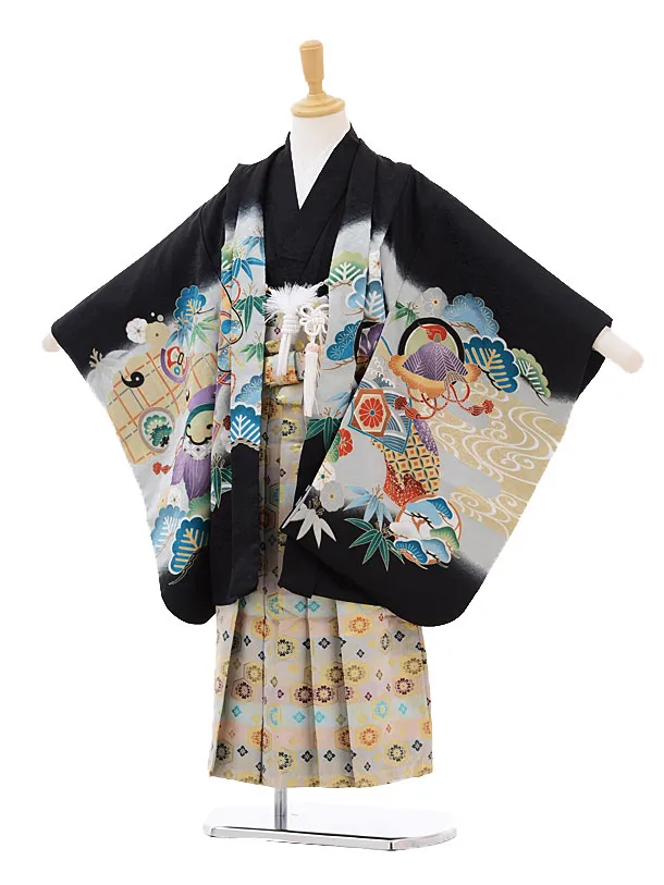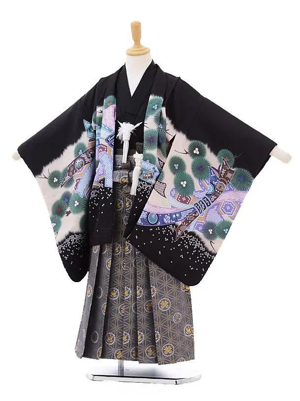 七五三レンタル(5歳男の子袴)5177黒地のしめかぶと×グレー袴