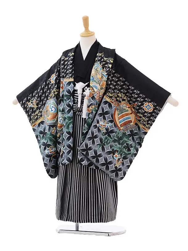 七五三レンタル(5歳男の子袴)5187黒地七宝かぶと×黒縞袴