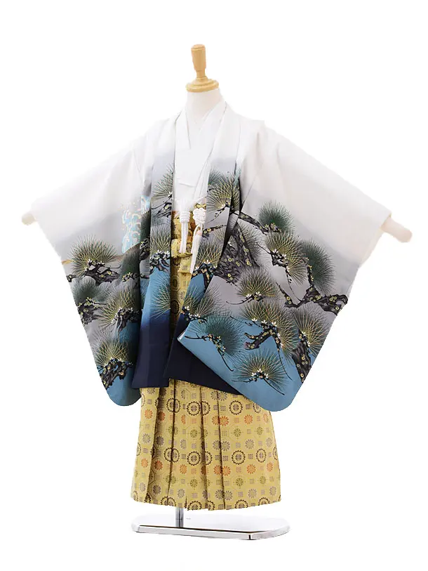 七五三レンタル(5歳男の子袴)5188白地松に虎×ベージュ袴