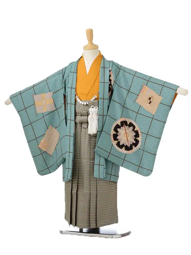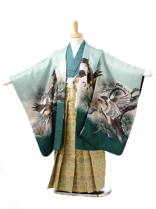 753レンタル(5歳男の子袴)0515グリーン鷹×金地袴