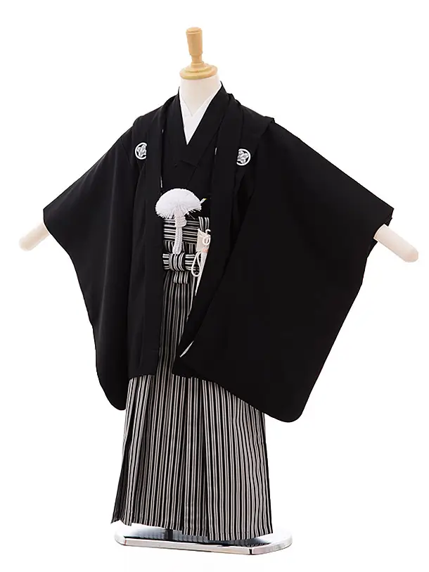 七五三(4歳男袴)2217黒紋付×黒縦縞