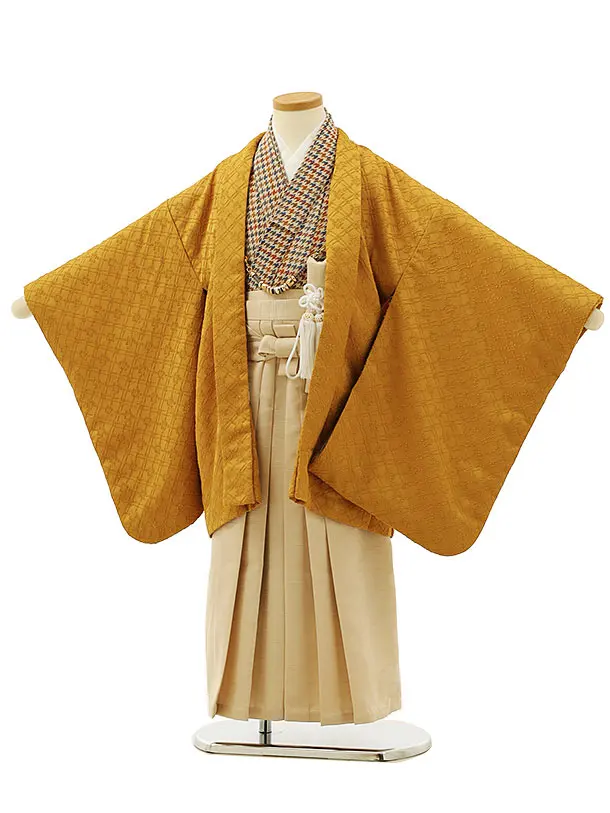 七五三レンタル(5歳男袴)X020からし色xアイボリー袴