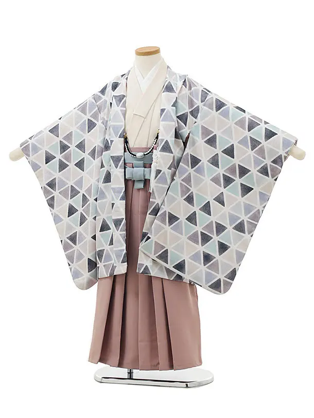 七五三レンタル(5歳男袴)X043ペールグレーうろこxピンク袴