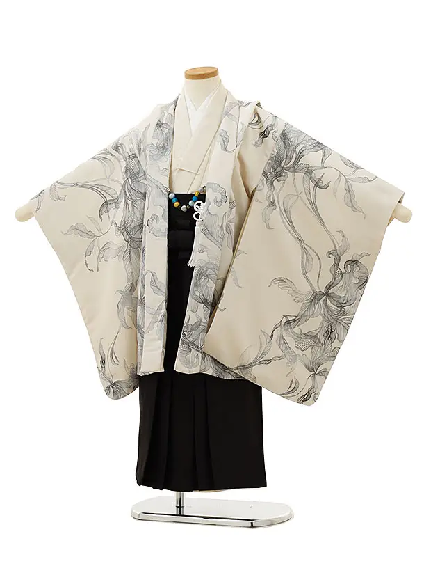 七五三レンタル(5歳男袴)X053アイボリー洋花x黒袴