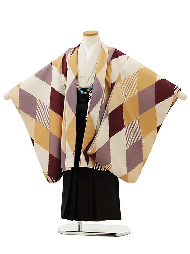 七五三レンタル(5歳男袴)X054ベージュ茶ダイヤx黒袴