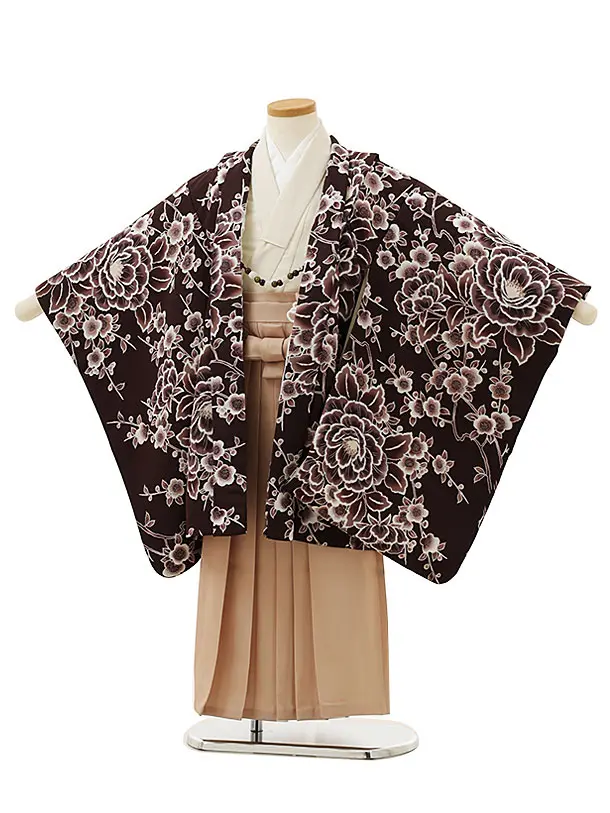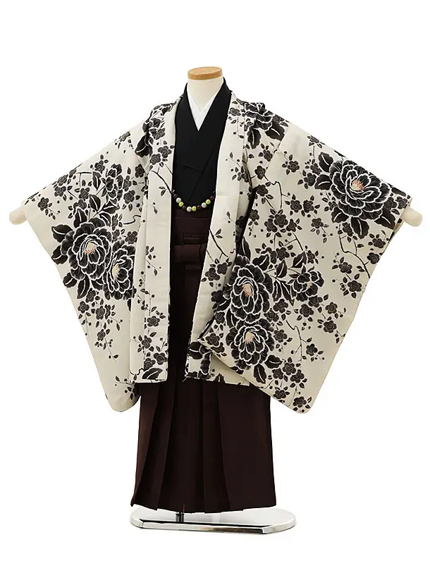 七五三レンタル(5歳男袴)X058クリーム地ぼたんx茶袴