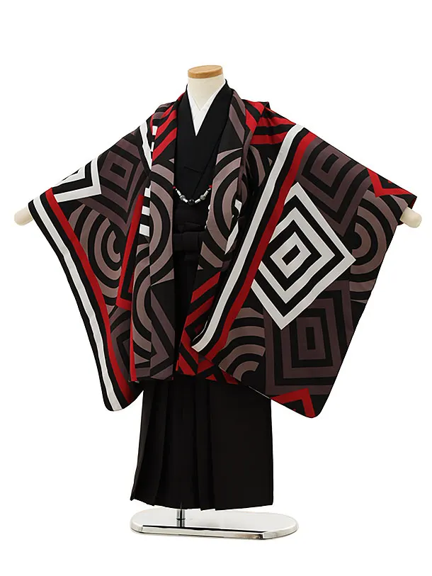 七五三レンタル(5歳男袴)X059黒地幾何学x黒袴