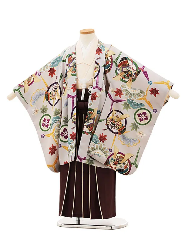 七五三レンタル(5歳男袴)X255グレー丸紋兜x茶